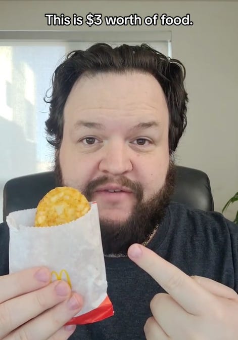 After McDonald’s raised prices, people on TikTok were furious, sharing viral videos of a $16 burger meal and comparing the price of a single hashbrown to 4-5 pounds of potatoes. McDonald’s CEO is finally realizing that the burger chain has an “affordability” problem and suggested it would cut prices on some items. (via CNN)